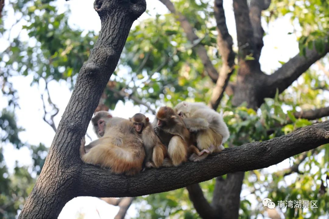 猴岛位于南湾湖中部、消夏岛和百果园半岛的北部,呈椭圆形,面积32亩。猴岛植被茂盛,因岛上有猴群分布而得名。岛上猴的种类和数量不多,基本采用野生放养方式,已经开发猴类观赏为主的旅游项目。可以观猴,逗猴,与猴同乐等趣味互动项目,猴王争霸是猴岛的一大亮点。猴岛上有专职饲养猴子的管理员,每天定时给岛上消毒,并在游人不太多的时候,通过哨声每天早晚集中喂养它们两次。